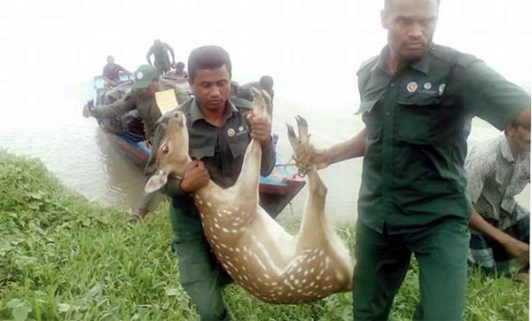 বাগেরহাটের মোংলা ইপিজেড এলাকা থেকে আহত অবস্থায় একটি চিত্রা হরিণ উদ্ধার করেছে সুন্দরবন পূর্ব বন বিভাগ।