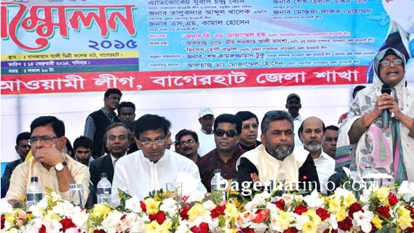 Bagerhat-Pic-1(14-02-2015)a.lig-Shomalonশনিবার বিকেলে বাগেরহাট শহরের খানজাহান আলী ডিগ্রি কলেজ মাঠে জেলা আওয়ামী লীগের ত্রি-বার্ষিক সম্মেলনে প্রধান অতিথির বক্তব্যে তিনি এ মন্তব্য করেন।