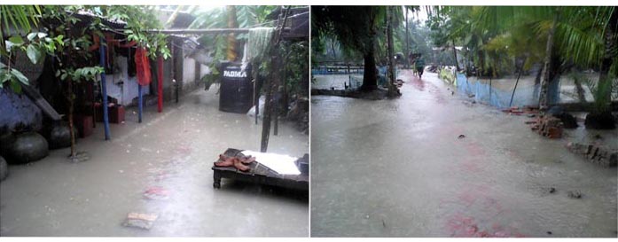 বৃষ্টির পানি জমে রাস্তা-ঘাট, ঘর-বাড়ী সর্বত্র তলিয়ে গেছে। ফলে, চরম দুর্ভোগ পোহাচ্ছে পানি বন্দী এখানকার সাধারন মানুষ।