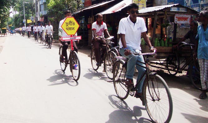 এ সময় দুর্নীতিবিরোধী বিভিন্ন শ্লোগান প্রচার করা হয়।