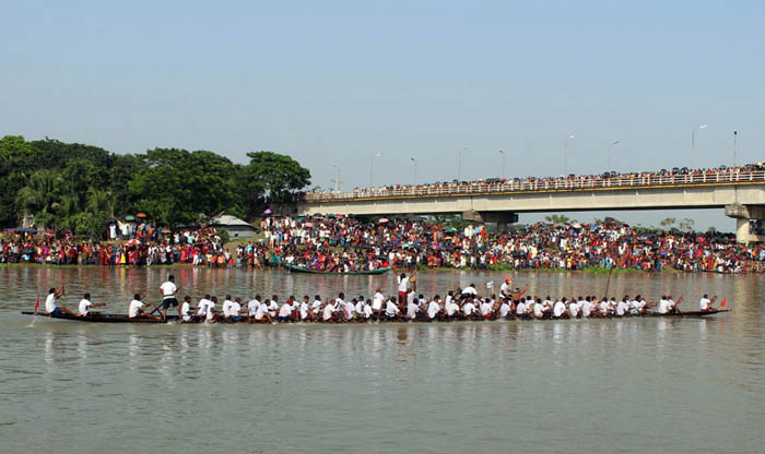 নৌকা বাইচকে কেন্দ্র করে নদীর উভয় তীরে প্রায় তিন কিলোমিটার এলাকা জুড়ে ছিলো দর্শনার্থীদের উপচে পড়া ভীড়। দোকানিদের বাহারী পণ্যের পসরায় সৃষ্টি হয় গ্রাম্য মেলার আবহ।