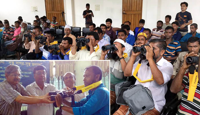 অনুষ্ঠান শেষে বাইনোকুলার পাওয়া জেলেদের এর ব্যবহার সম্পর্কে প্রশিক্ষণ দেওয়া হয়।