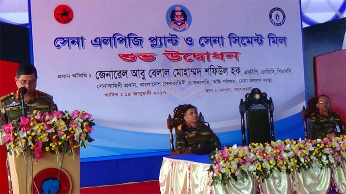 রোববার (১৫ জানুয়ারি) দুপুরে বাগেরহাটের মংলায় সেনা কল্যাণ সংস্থার সিমেন্ট ফ্যাক্টরি এলাকায় নতুন ব্র্যান্ড সিমেন্ট ও গ্যাস প্লান্টের উদ্বোধন করেন সেনা প্রধান।