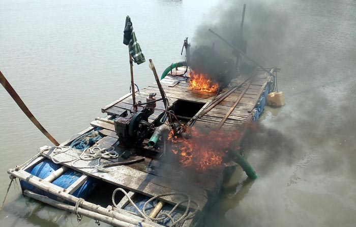 অবৈধভাবে বালু তোলায় পোড়ানো হলো ৪ ড্রেজার