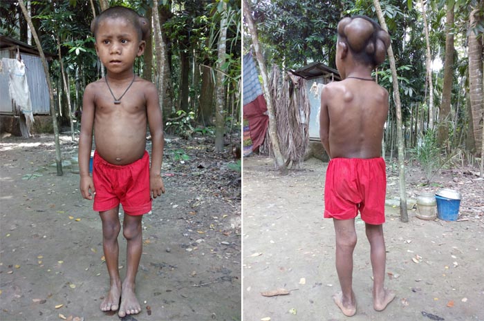 শিশুটির মা সখিনা বেগম বলেন, ‘মাথার পেছনে টিউমারগুলো শুধু বড় হচ্ছে। ফোড়ার মতো দুটি ঠেটে গিয়েছে, মাঝে মাঝে তা দিয়ে রক্ত বের হয়। মাঝে মাঝে ব্যথার কথা বলে। রাতে শুতে (ঘুমাতে) গিয়ে কান্নাকাটি করে। আমাদের তো টাকা-পয়সা নেই; ওর চিকিৎসকা করাবো কি করে?’
