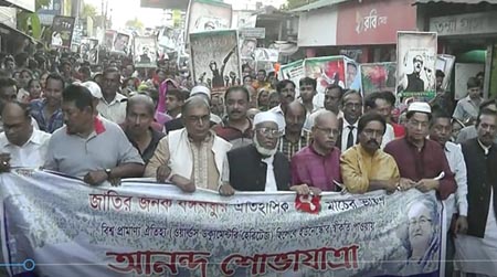 কেন্দ্র ঘোষিত কর্মসূচির চতুর্থ দিনে জেলা আওয়ামীলীগের উদ্যোগে এই আনন্দ শোভাযাত্রাটি বের করা হয়। এতে আওয়ামীলীগ ও তার অংগ সংগঠনের নেতাকর্মী ও সমর্থকরা অংশ নেন।