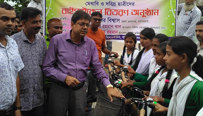 বাগেরহাট সদরে মাধ্যমিক পর্যায়ের ১০০ ছাত্রীকে বাইসাইকেল দেওয়া হয়েছে।