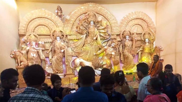 দূর্গাপূজার মূল আনুষ্ঠানিকতা শুরুর আগে থেকেই ভক্ত-দর্শনার্থীদের ভিড় শুরু হয়েছে এই মণ্ডপে।