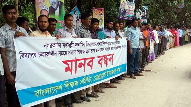 শিক্ষক মারধর: সভাপতির গ্রেপ্তার দাবিতে মানববন্ধন