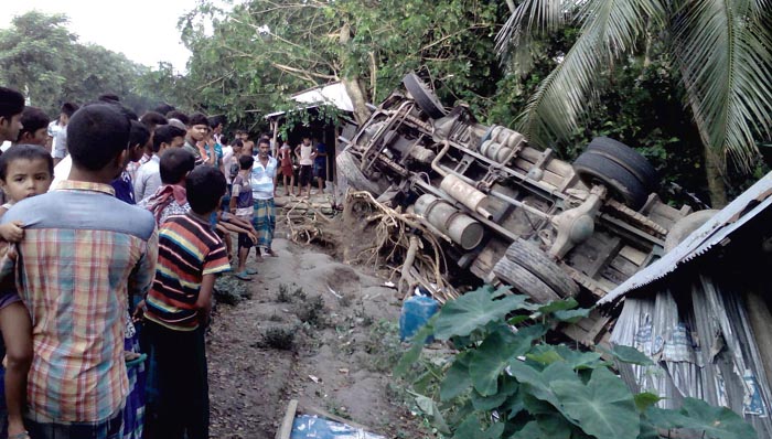পণ্যবাহী ট্রাক উল্টে ঘুমন্ত যুবক নিহত