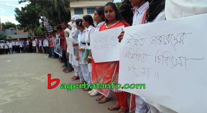 “শিক্ষিত ডাক্তাদের অশিক্ষিত চিকিৎসা চাই না” কিম্বা “নার্সদের মডেলিং নয়, সেবা চাই” – প্রিয় বন্ধুকে হারিয়ে এমন নানা বক্তব্য সম্বলিত প্ল্যাকার্ড নিয়ে বৃহস্পতিবার রাজপথে দাড়ায় মটরসাইকেল দুর্ঘটনায় নিহত কলেজছাত্র রিফাত হাসানের সহপাঠীরা। রিফাতের সহপাঠীদের অভিযোগ বাগেরহাট সদর হাসপাতালে প্রয়োজনীয় চিকিৎসা সেবার অভাবে মৃত্য হয় তাদের প্রিয় বন্ধুর। দুপুরে বাগেরহাট কেন্দ্র শহীদ মিনারের সামনে এক মানববন্ধন …