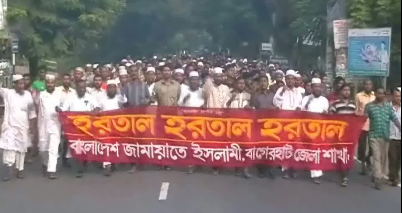 বাগেরহাটে জেলা জামায়াতের বিক্ষোভ ও সড়ক অবরোধ