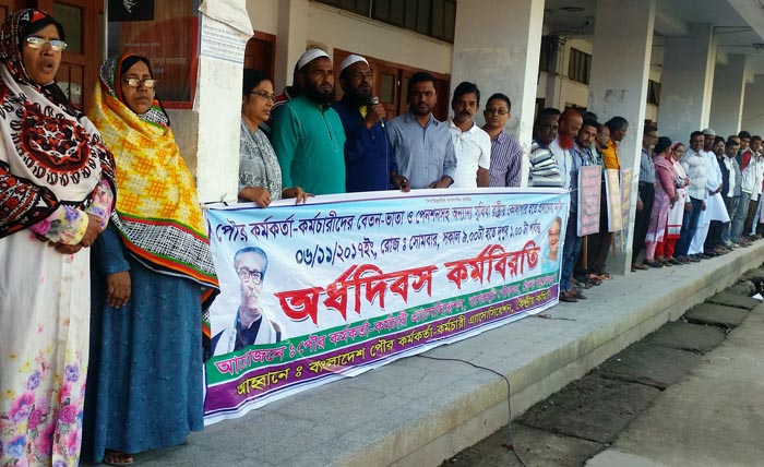 বাগেরহাটে পৌর কর্মচারীদের অর্ধদিবস কর্মবিরতি