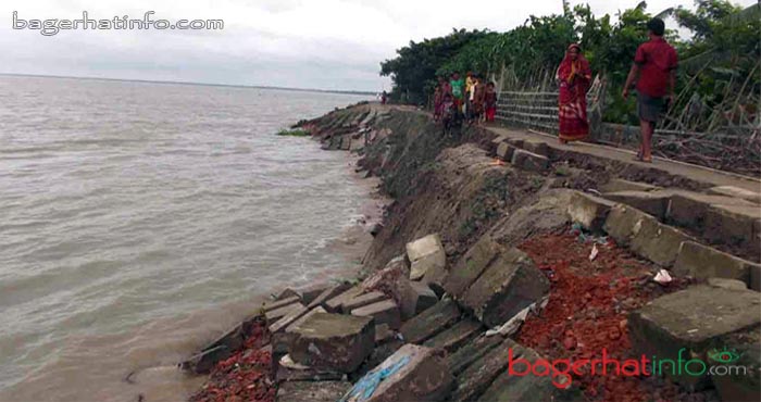 বাগেরহাটে পাউবো’র বাঁধে ভাঙন, এলাকাবাসী আতঙ্কে