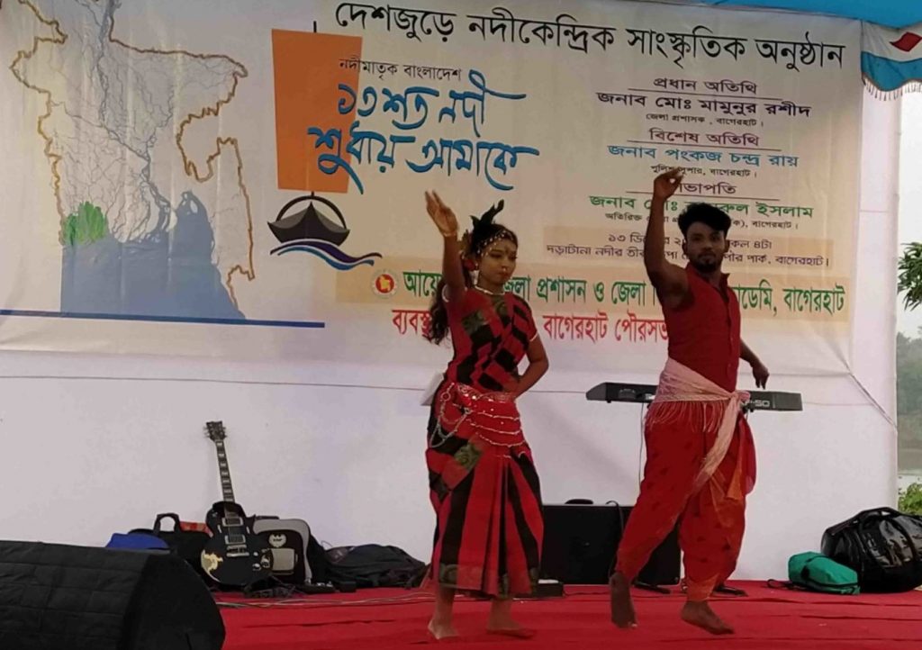 অনুষ্ঠানে বাগেরহাটে সঙ্গীত শিল্পি বেলাল বাদশা, ইউসুফ বাউল, খুলনা বেতারের নিখিল মজুমদার, জারি গানের শিল্পি নাসিমা আক্তার সাথিসহ স্থানীয় সংস্কৃতি কর্মীরা নদী সম্পর্কিত গান ও নৃত্য পরিবেশন করেন।