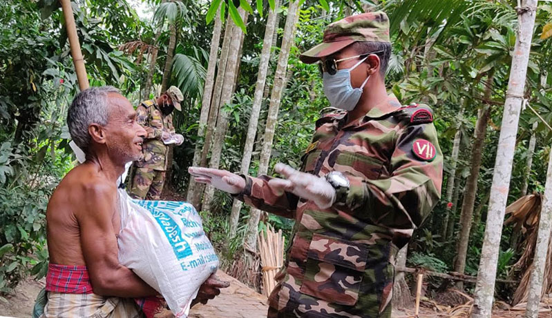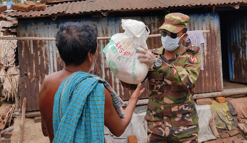নিজেদের জন্য বরাদ্দ হওয়া রেশন থেকে বাঁচিয়ে অসহায় ও দরিদ্রদের মাঝে এই সহায়তা পৌঁছে দিচ্ছেন তারা। এ পর্যন্ত বাগেরহাট জেলার ৪ উপজেলার সহস্রাধিক পরিবারকে খাদ্য সহায়তা পৌঁছে দিয়েছে শেখ হাসিনা সেনানিবাসের ৭ পদাতিক ডিভিশন।